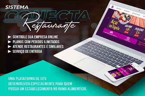Se você precisa de um site para vender mais, o sistema Conecta tem o que você procura. Site para restaurantes, lanchonetes, sorveterias, petiscarias, comidas orientais, burguerias entre outros, além de várias opções de personalização para deixar seu site com a cara da sua empresa.